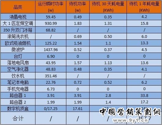 家电待机一年浪费267度电