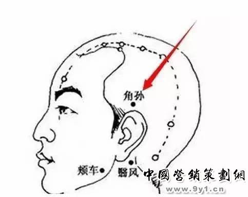 这个穴位在耳朵的最高点内侧,隐藏在头侧面的小凹处就是角孙穴。平时按摩这个穴位能够很好的促进头部的血液循环,从而有利于头发的生长。