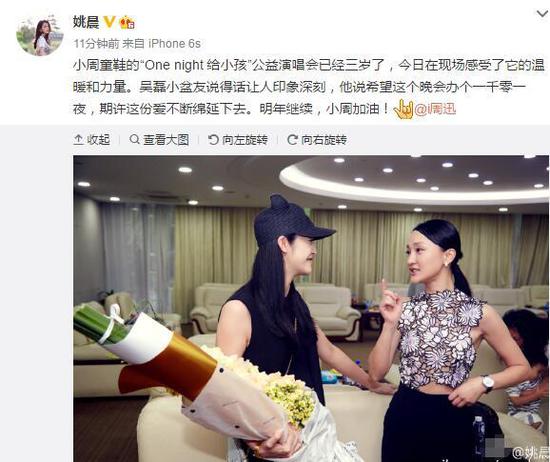 - 破不和传言!姚晨助阵周迅公益晚会晒合照